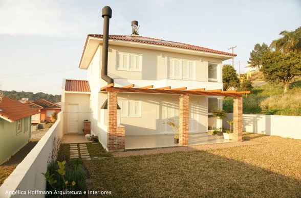 Residência projetada com alguns requisitos mínimos de sustentabilidade. Paredes externas duplas, toda em alvenaria de tijolos maciços. Placas Solares para aquecimento da água. Lareira de alta eficiência, para aquecimento dos ambientes e complementar ao aquecimento da água em dias muito nublados. Ambientes bons, mas não tão grandes, evitando desperdícios. Ventilação cruzada para boa ventilação nos dias mais quentes. Pintura interna branca e amplas janelas, iluminando os ambientes com a luz do dia. Lâmpadas e eletros eficientes como consumo diário mais consciente. Soluções simples de arquitetura e materiais locais deixam esta obra um tanto especial.
