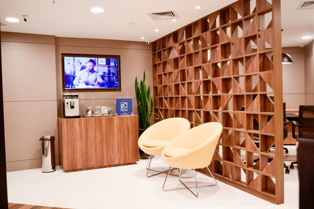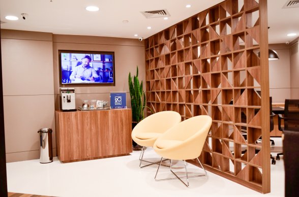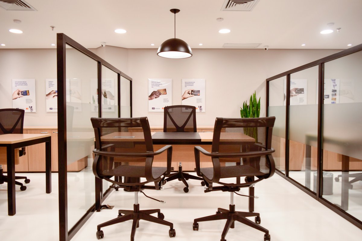 O projeto que foi concebido para ser uma UNIDADE DE NEGÓCIOS. Após muita procura de imóveis na cidade, a diretoria resolveu apostar em uma agência de negócios localizada dentro do Shopping garantindo um ambiente seguro e agradável para seus cooperados. E com apenas 76 m² desenvolvemos um ambiente PRIME executado em apenas 45 dias.
